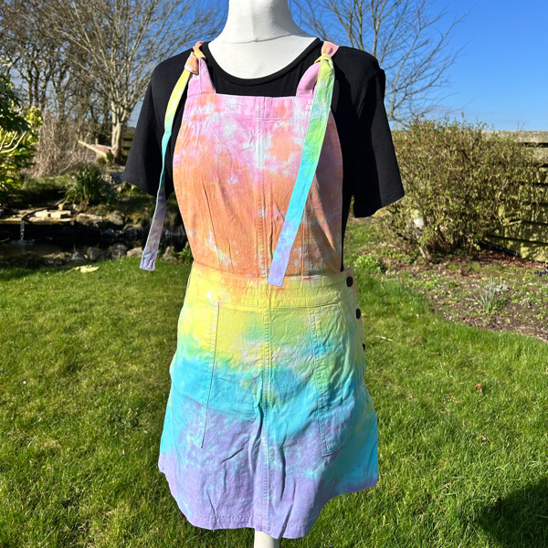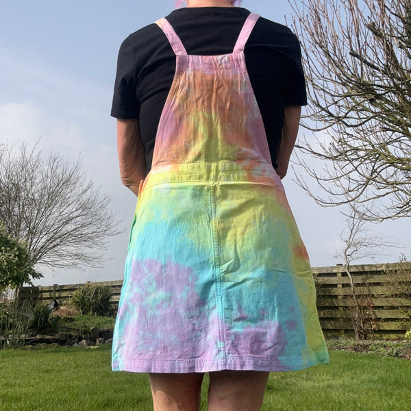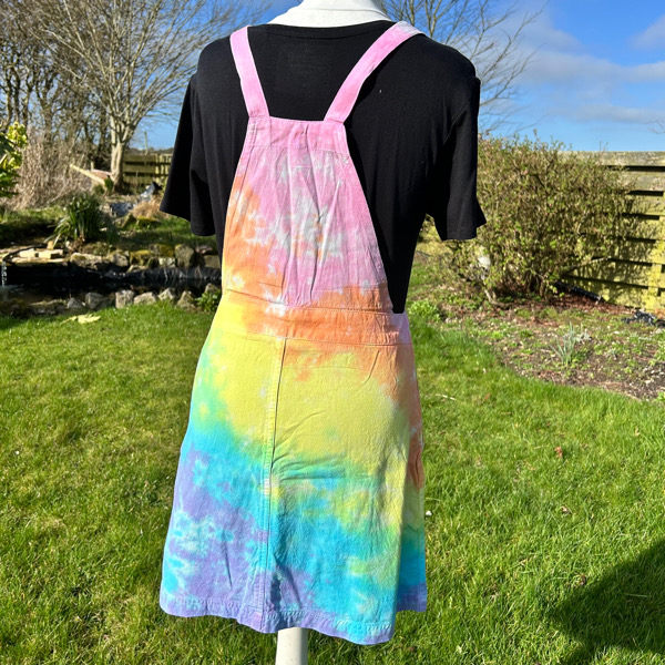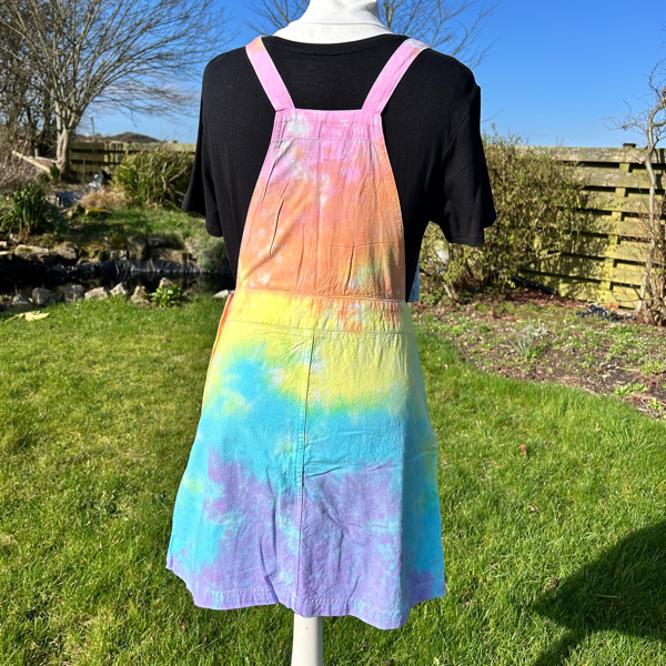 Each pale rainbow pinny is individually hand-dyed by me in the UK, creating a completely unique blend of colour and pattern. No two are ever the same — your piece is completely unique.